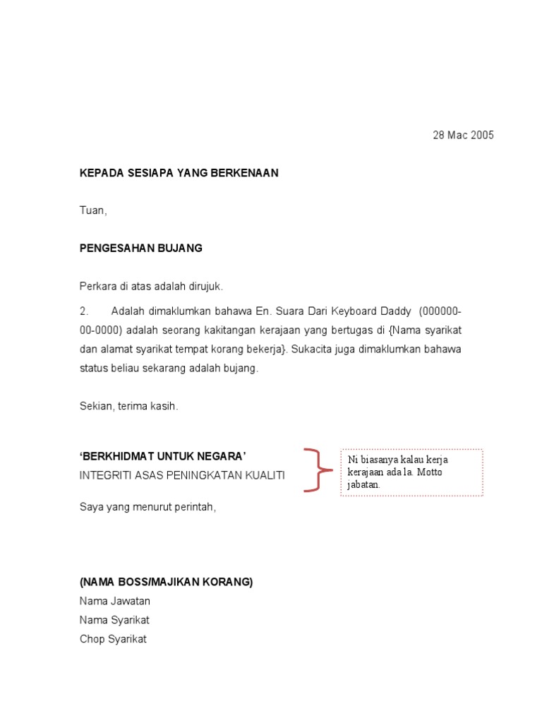 Contoh Surat Pengesahan Bujang Pdf